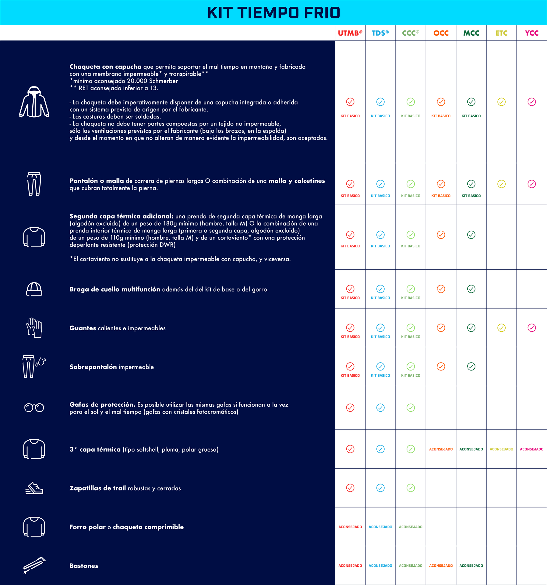Es importante tener en cuenta que el material impuesto por el organizador es un mínimo vital que cada corredor debe adaptar en función de sus capacidades.